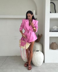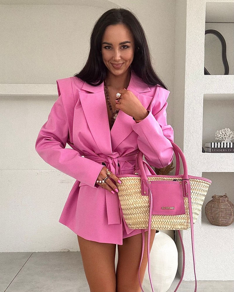 Marynarka wiązana La Milla w kolorze soczystego różu to doskonały wybór dla kobiet ceniących sobie oryginalność i styl. Pasek w talii pozwala idealnie dopasować marynarkę do sylwetki, podkreślając kobiece kształty. Wyrazisty kolor ożywi każdą stylizację i sprawi, że będziesz przyciągać spojrzenia. Wysokiej jakości tkanina zapewnia wygodę przez cały dzień. To świetna propozycja zarówno na imprezy, jak i na codzienne wyjścia, kiedy chcesz wyglądać wyjątkowo i modnie.
