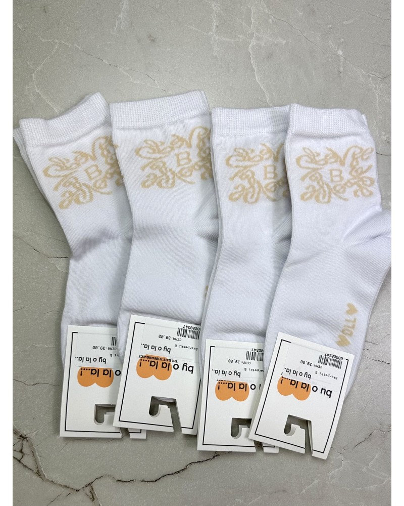 Delikatne skarpetki By o la la...! z beżowym haftem 🤍 to połączenie wygody i wyrafinowanego designu. Ich miękka tkanina świetnie dopasowuje się do stopy, a jasny haft dodaje świeżości każdej stylizacji.