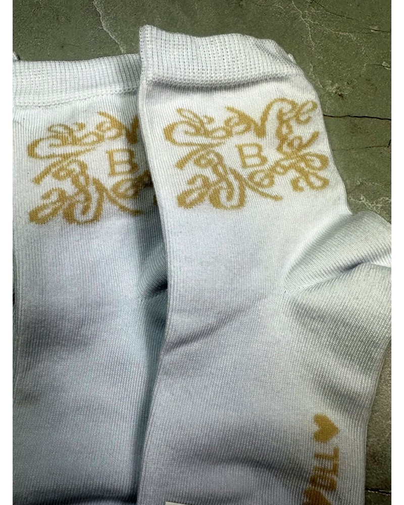Białe skarpetki z haftem w odcieniu beżu 🤍 – subtelna elegancja na co dzień.