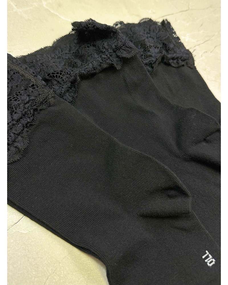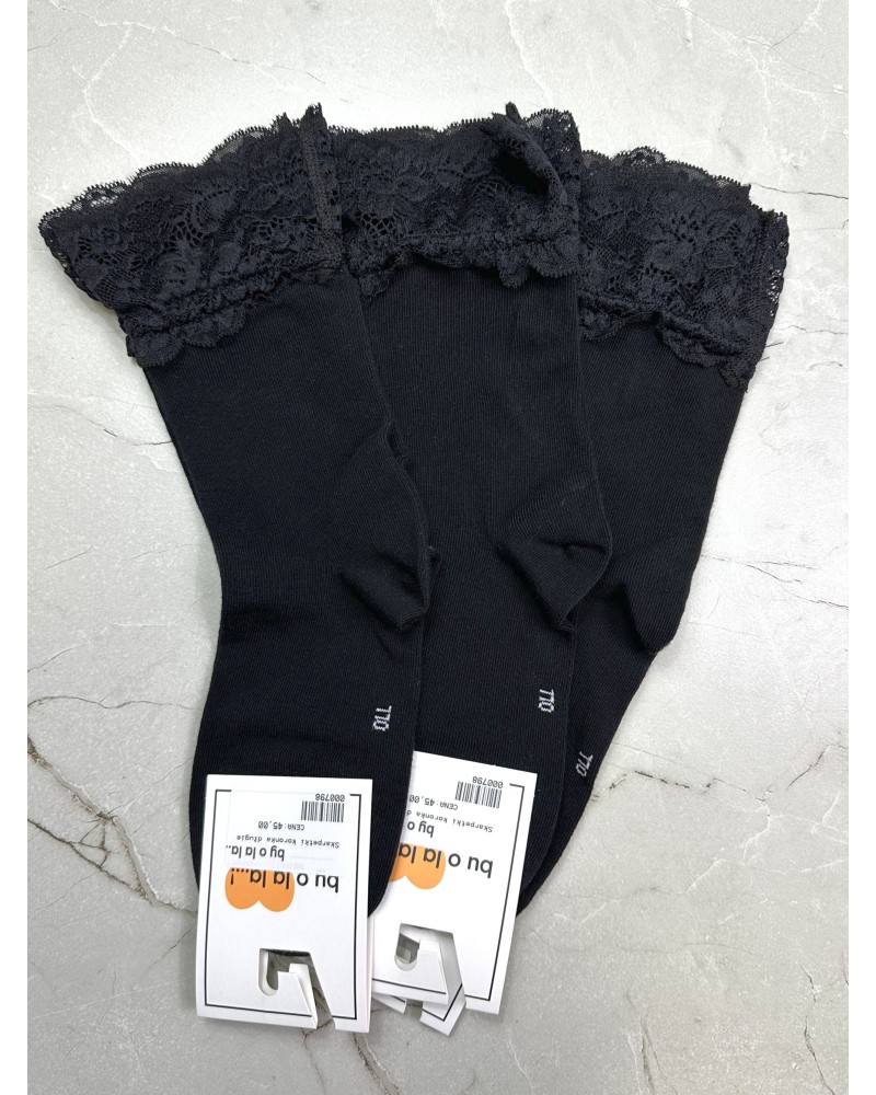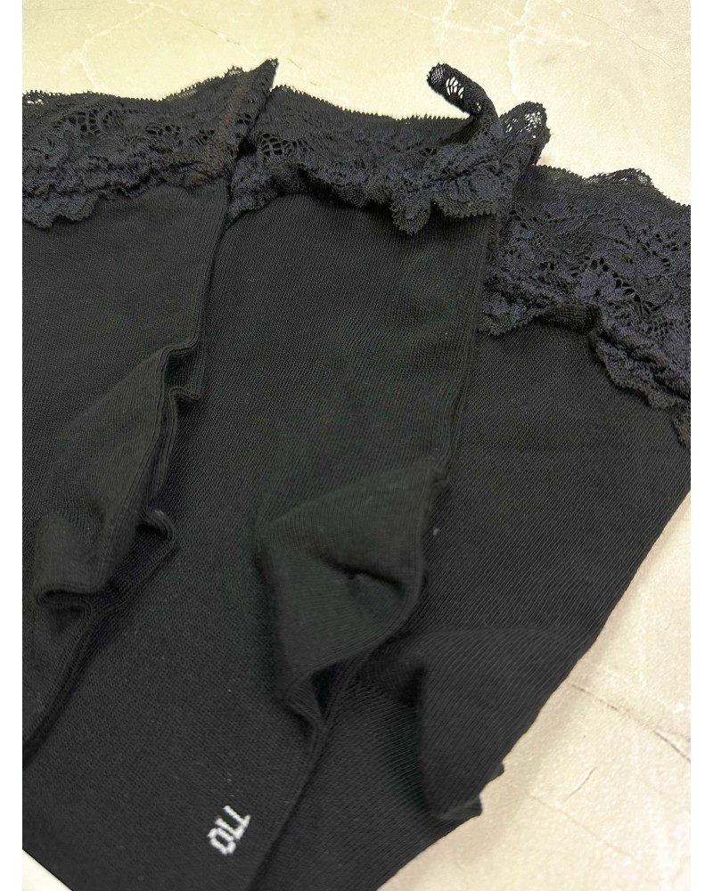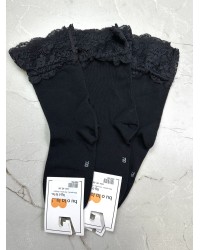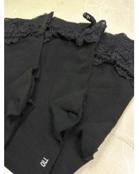 Wysokie skarpetki By o la la...! ozdobione czarną koronką to idealny wybór dla kobiet, które lubią romantyczne, ale odważne dodatki. Miękki materiał w połączeniu z ozdobną koronką nadaje stylizacjom wyjątkowego charakteru.