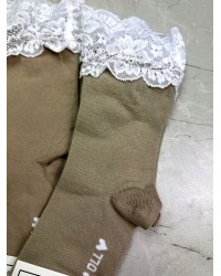 Skarpetki z koronką wysokie By o la la...! beżowe