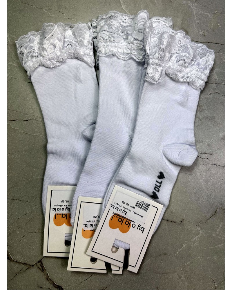 Białe skarpetki By o la la...! z delikatną koronką 🌿 to must-have w szafie każdej kobiety. Wysoka jakość materiału i dopracowane detale sprawiają, że doskonale uzupełnią zarówno codzienne, jak i bardziej eleganckie stylizacje.