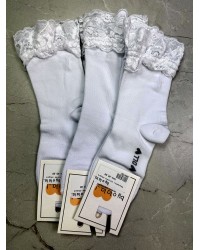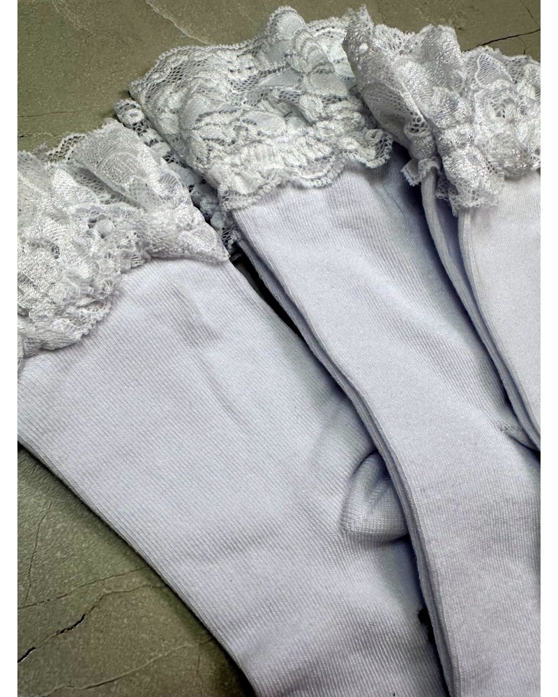 Białe wysokie skarpetki z ozdobną koronką 🌿 – klasyka z nutą romantyzmu.