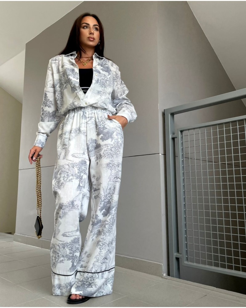 Lekkie, szerokie spodnie z oryginalnym printem Idealne na lato, wakacje i stylowe spacery po plaży