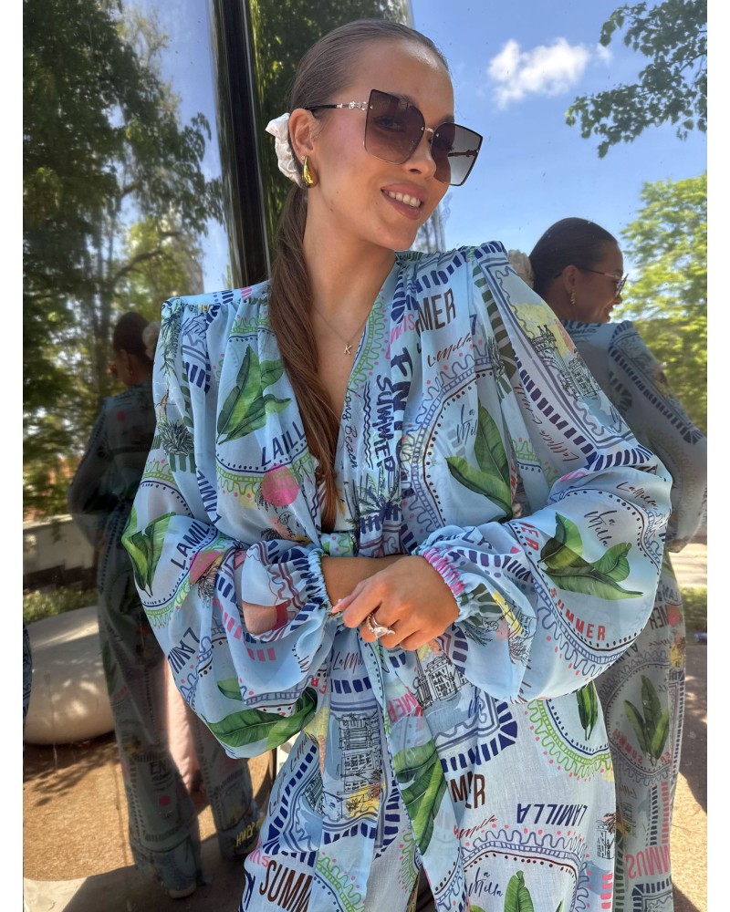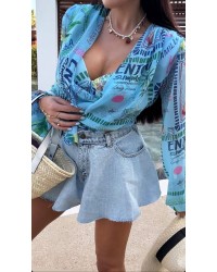 Ta wyjątkowa, krótka koszula z efektownym printem to must-have tego sezonu! 👚 Wiązanie w pasie pięknie podkreśla talię, a lekki, przewiewny materiał zapewnia komfort nawet w najcieplejsze dni 🌞