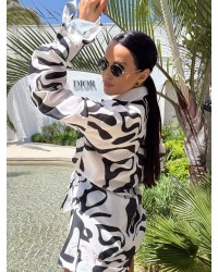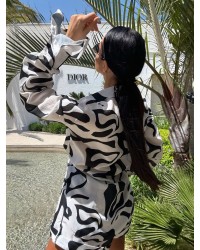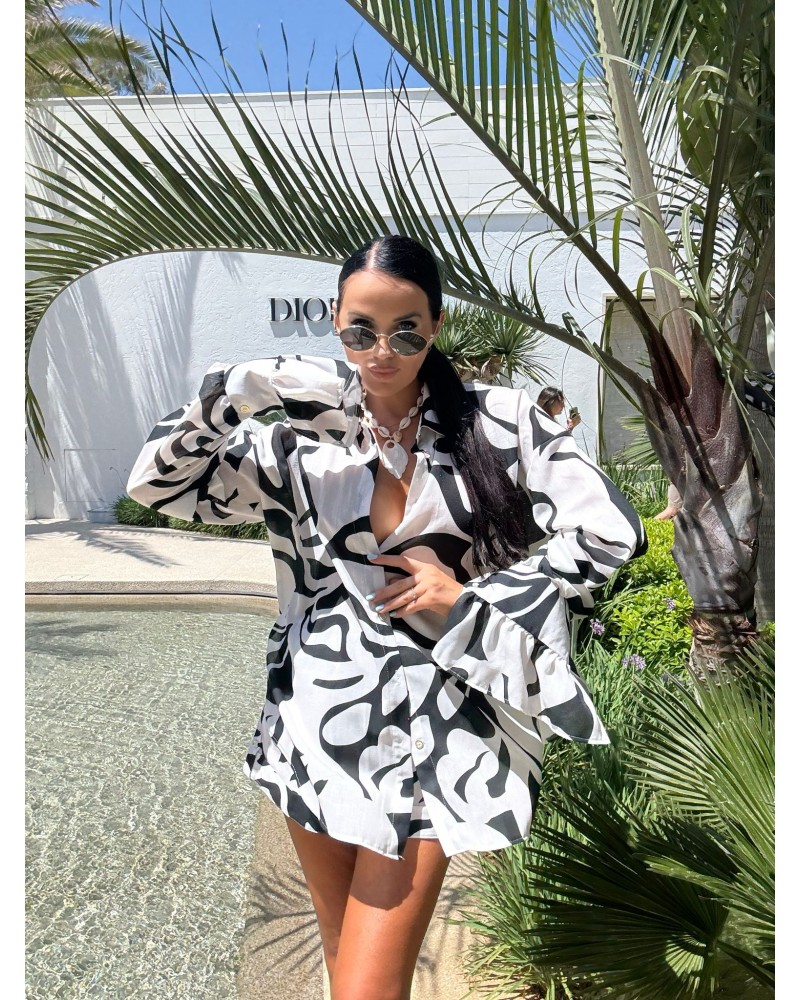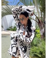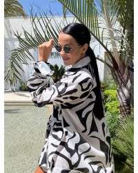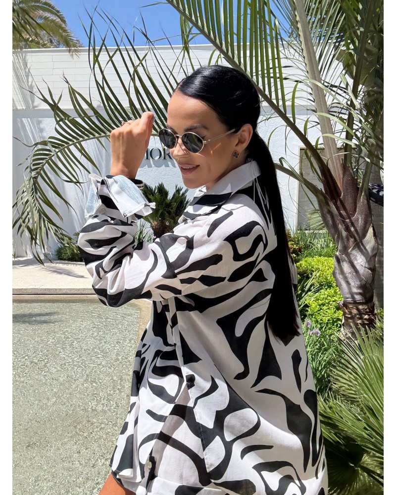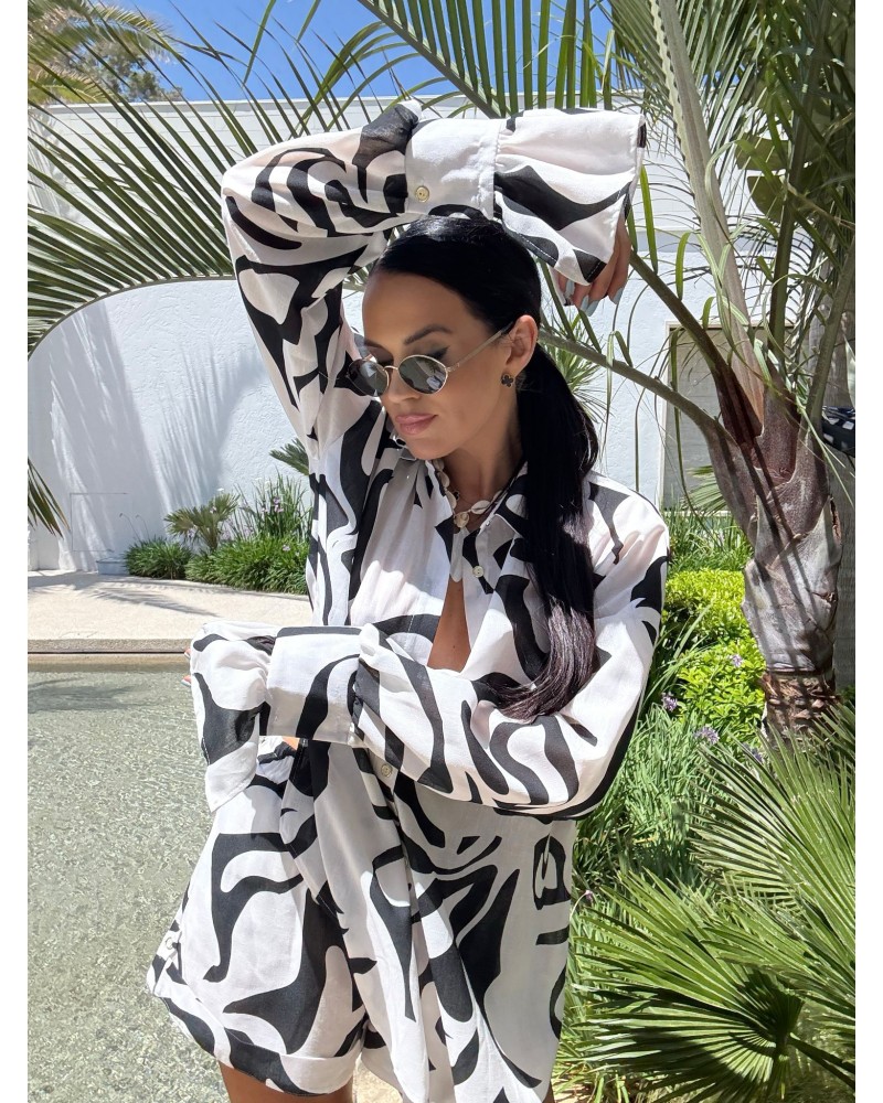 Ten zestaw to totalny hit letnich stylizacji! Koszula z kołnierzykiem i długim rękawem świetnie łączy się z krótkimi szortami, tworząc harmonijną i stylową całość. Print przyciąga spojrzenia i dodaje charakteru każdemu lookowi