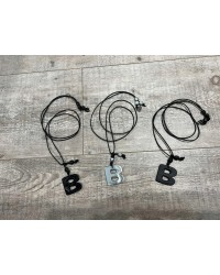 Srebrna, masywna litera B na regulowanym czarnym rzemyku to połączenie nowoczesnego designu z nutką nonszalancji. ✨