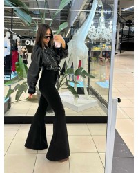 Spodnie materiałowe, z gumką w pasie, o kroju szerokich dzwonów.