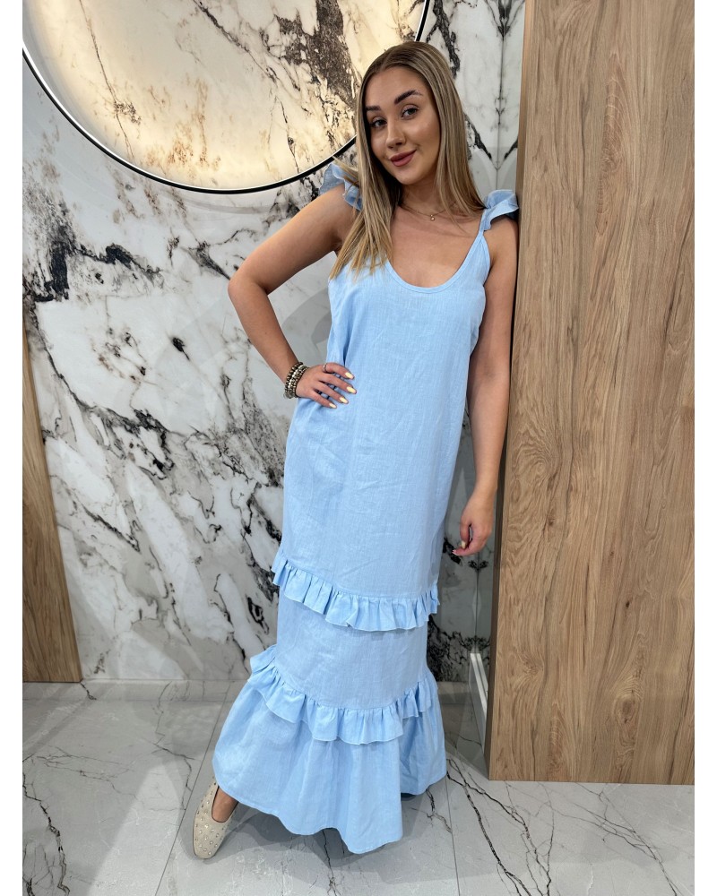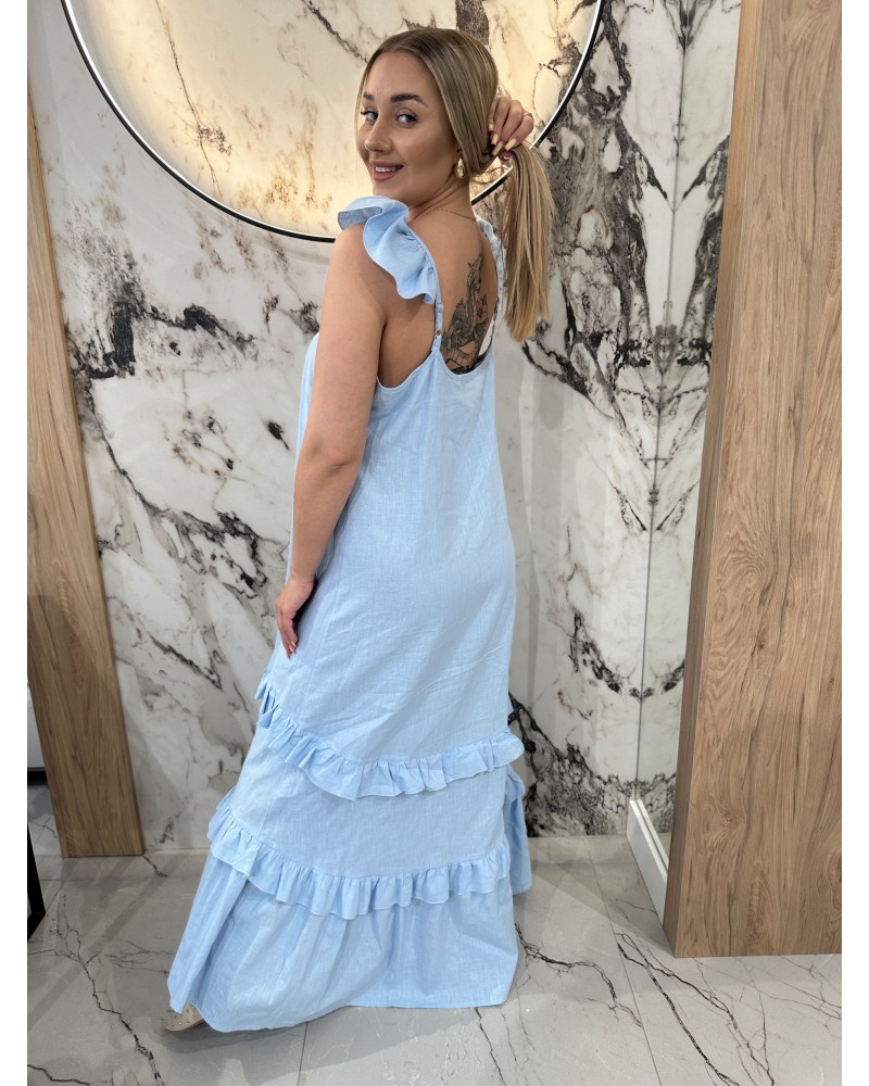 Letnia sukienka maxi z uroczymi falbanami i wiązanymi ramiączkami Idealna na wakacje, spacery i ciepłe dni