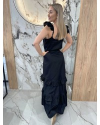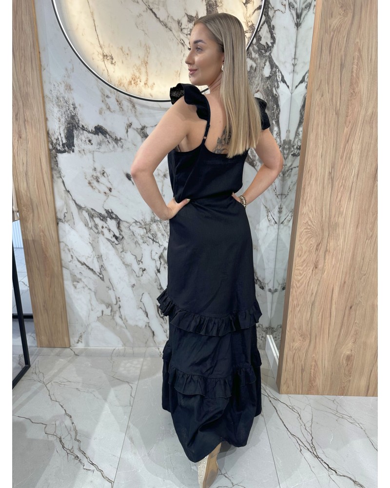 Letnia sukienka maxi z uroczymi falbanami i wiązanymi ramiączkami Idealna na wakacje, spacery i ciepłe dni