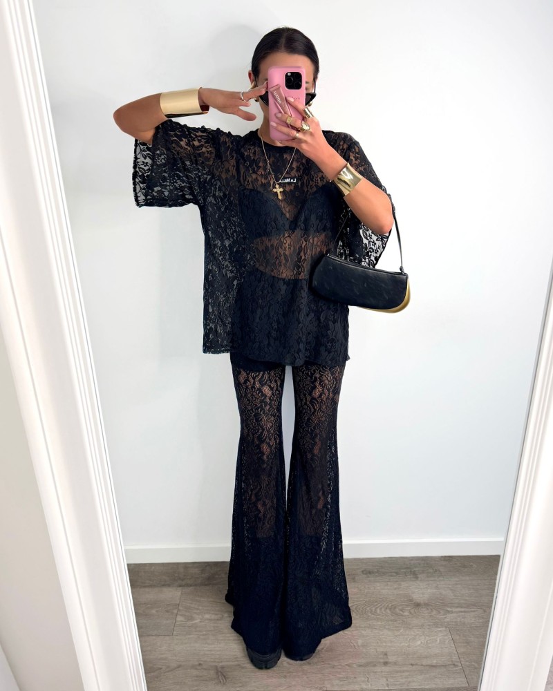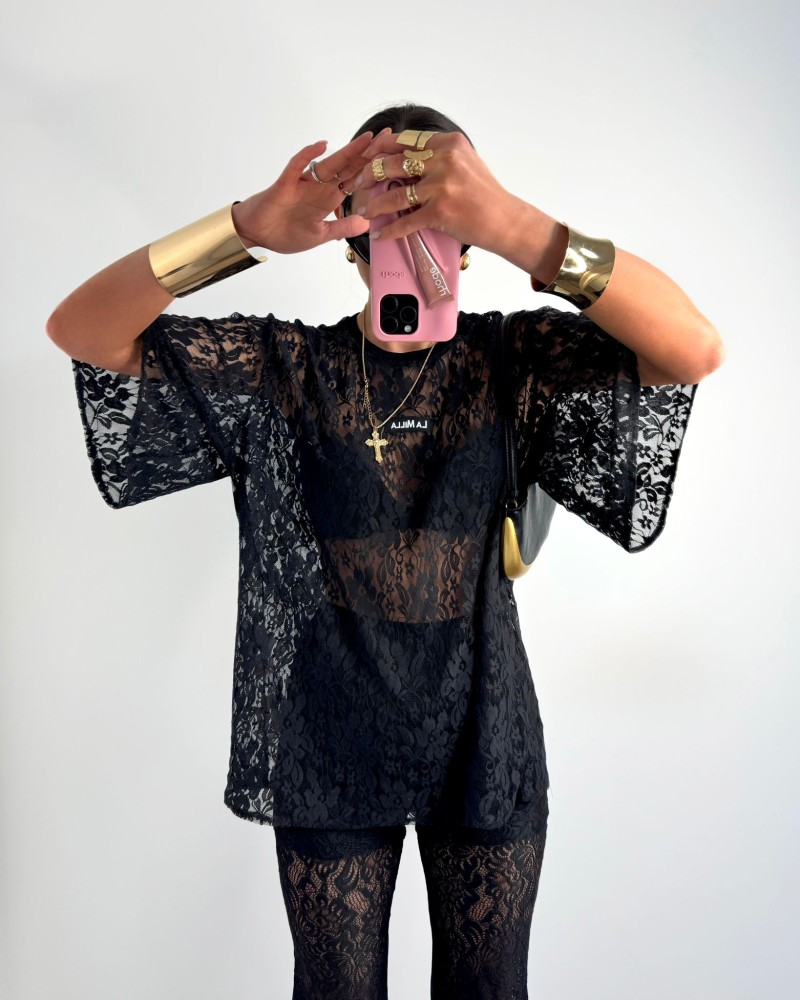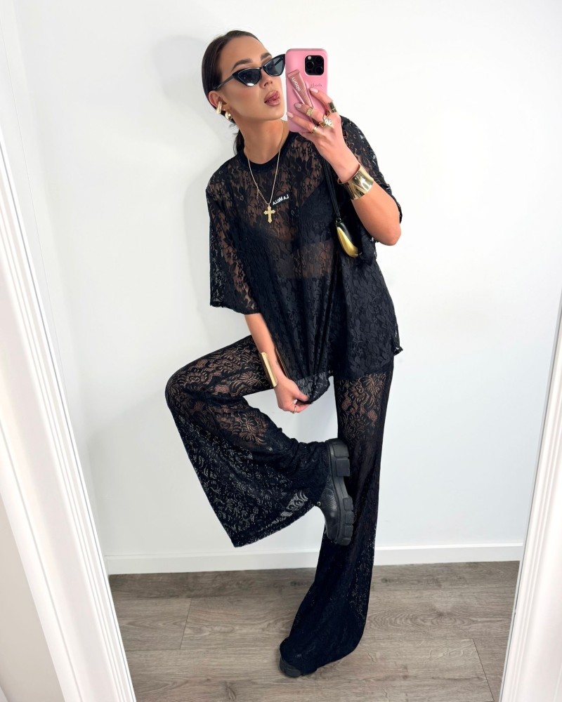 Koronkowy t-shirt o luźnym kroju Zmysłowy, stylowy i idealny na lato lub wieczorne wyjście