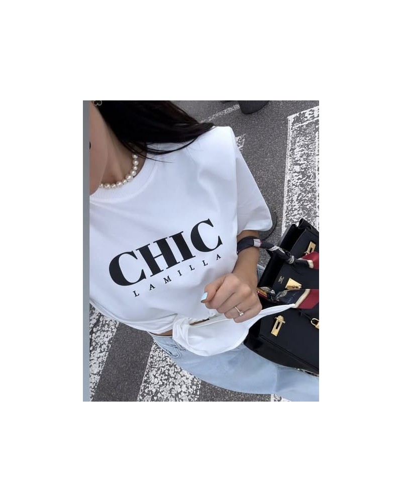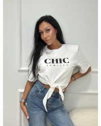 Bluzka "CHIC" z wiązaniem to połączenie wygody i miejskiego stylu. Jej oversize’owy krój oraz wyrazisty nadruk przyciągają uwagę i nadają charakteru każdej stylizacji. Luźne rękawy i miękki materiał sprawiają, że noszenie jej to czysta przyjemność