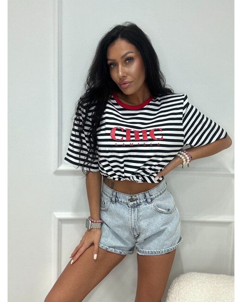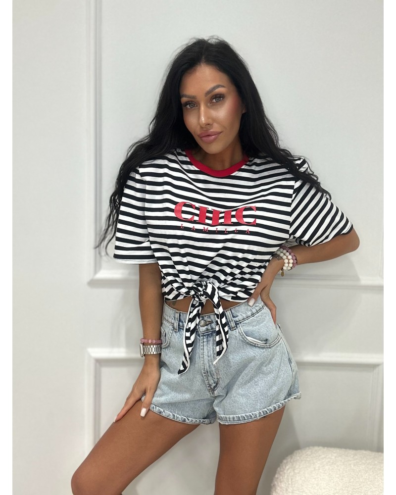 Bluzka "CHIC" z wiązaniem to połączenie wygody i miejskiego stylu Jej oversize’owy krój oraz wyrazisty nadruk przyciągają uwagę i nadają charakteru każdej stylizacji. Luźne rękawy i miękki materiał sprawiają, że noszenie jej to czysta przyjemność