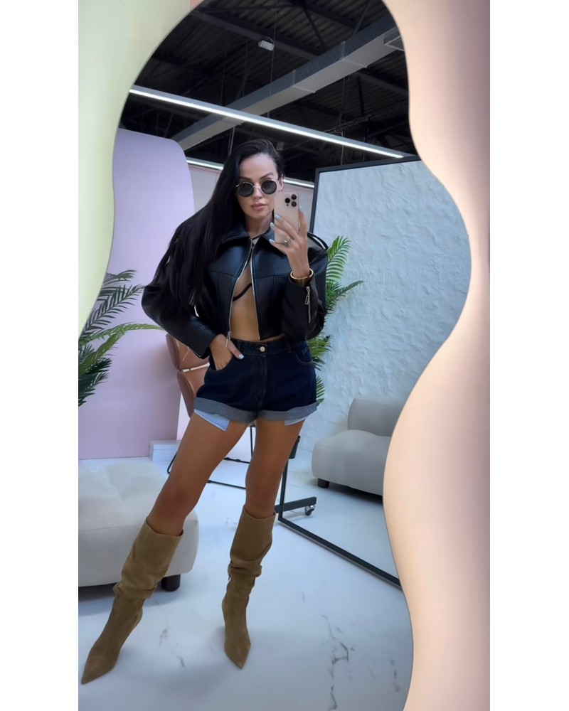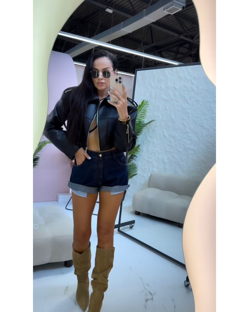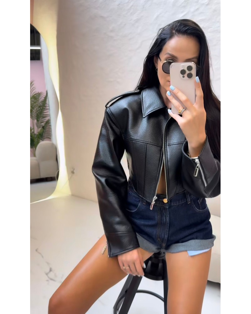 Postaw na ponadczasowy styl i odrobinę rockowego pazura z tą modną ramoneską! Krótki, dopasowany krój pięknie podkreśla sylwetkę, a detale w postaci suwaków na rękawach oraz ozdobnych przeszyć nadają całości wyjątkowego charakteru. Idealna do miejskich stylizacji – świetnie komponuje się z jeansami, szortami czy sukienkami. To doskonały wybór na chłodniejsze dni i wieczorne wyjścia. Jeśli szukasz połączenia stylu i wygody – właśnie ją znalazłaś.