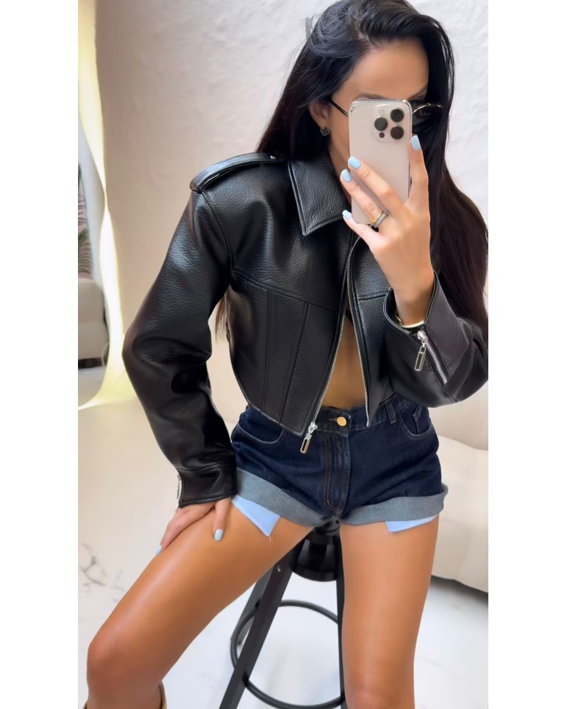 Stylowa ramoneska o dopasowanym kroju z efektownym wykończeniem i suwakami – must-have w każdej garderobie.