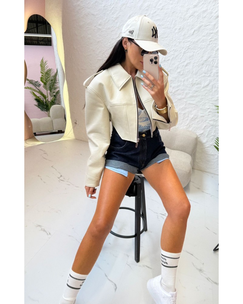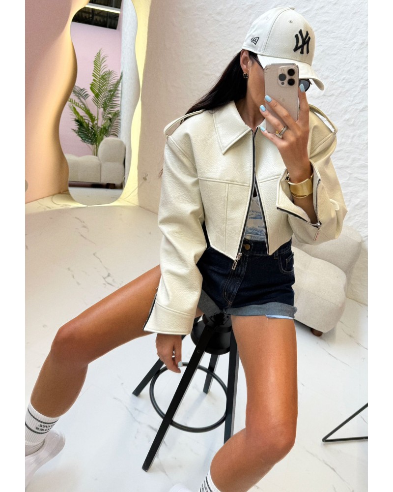Stylowa ramoneska o dopasowanym kroju z efektownym wykończeniem i suwakami – must-have w każdej garderobie.