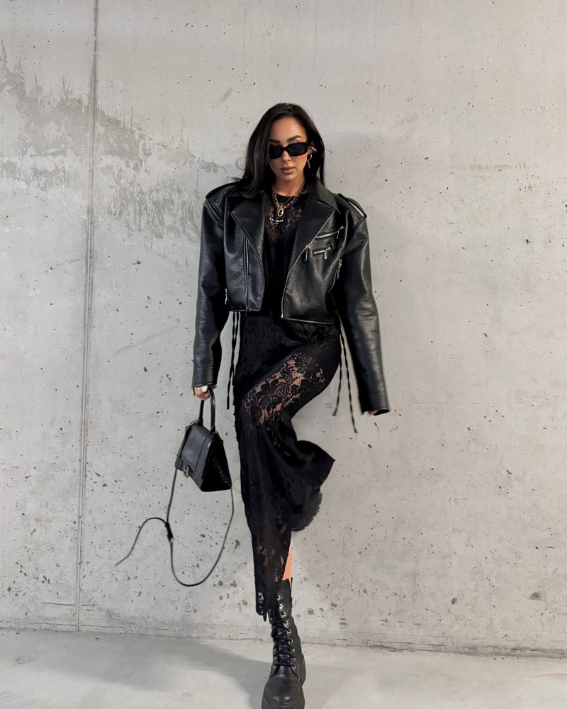 Zmysłowa długa sukienka wykonana z delikatnej koronki to propozycja dla kobiet, które cenią oryginalność i odważny styl. Lekki, prześwitujący materiał układa się luźno na sylwetce, tworząc efektowną warstwę idealną na wieczorne okazje, eventy czy modne wyjścia. Krój sukienki zapewnia komfort noszenia i swobodę ruchu, jednocześnie subtelnie podkreślając kształty. Idealna do zestawienia z cięższym obuwiem i wyrazistymi dodatkami – tworzy spójną stylizację z charakterem. Doskonały wybór dla pewnych siebie kobiet, które chcą wyróżnić się z tłumu.