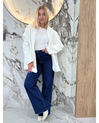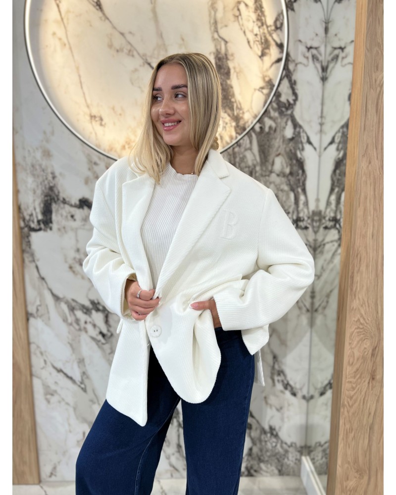 Krótka marynarka o ponadczasowym fasonie to uniwersalna propozycja do wielu stylizacji. Model wykonany z przyjemnego w dotyku materiału o delikatnej fakturze, zapinany na dwa guziki. Posiada klasyczny kołnierz, ozdobne klapy oraz dwie przednie kieszenie z patkami, które dodają jej eleganckiego charakteru. Doskonale sprawdzi się zarówno do pracy, jak i na co dzień, łącząc styl z wygodą. Można ją zestawić z jeansami, cygaretkami czy spódnicą, tworząc spójną i modną całość.