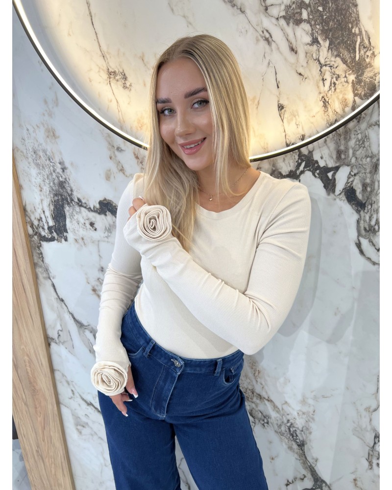 Bluzka z długim rękawem i ozdobnymi marszczeniami przy mankietach. Stylowy fason idealny na wiele okazji.