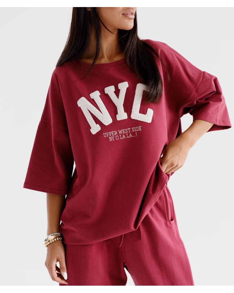 Luźny T-shirt z nadrukiem NYC i oversize’owym fasonem. Komfortowy i modny – idealny do stylizacji na co dzień.
