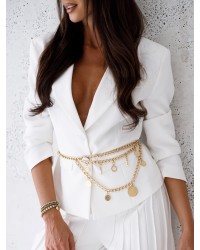 Elegancka marynarka o klasycznym kroju z klapami i kieszeniami. Doskonała baza do stylizacji biurowych i codziennych.