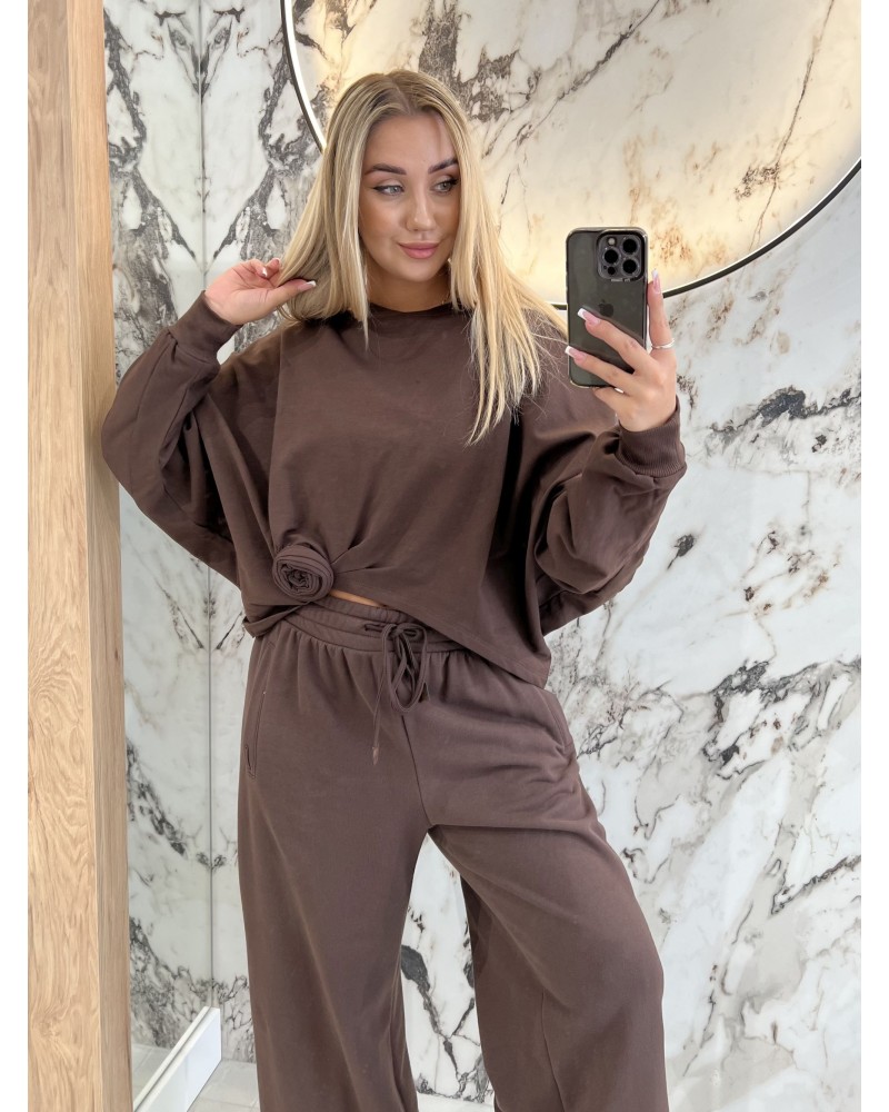 Asymetryczna bluza z dekoracyjnym wiązaniem w formie róży. Modna i wygodna propozycja na co dzień.