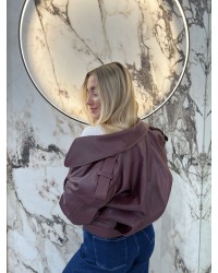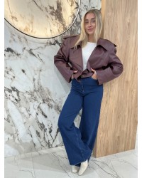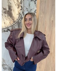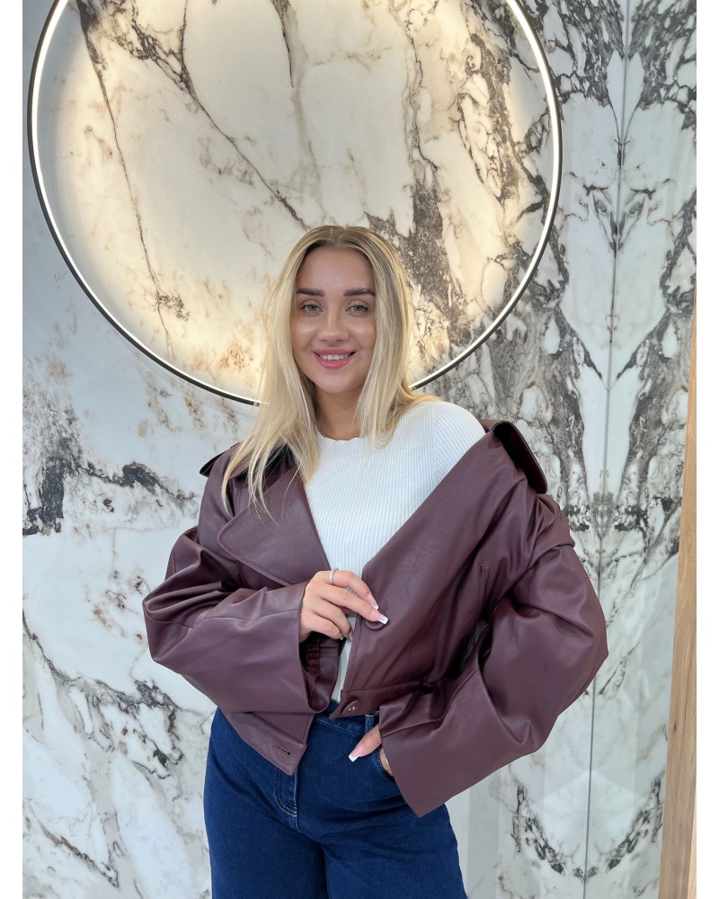 Kurtka z ekoskóry o krótkim kroju z klapami i ozdobnymi naramiennikami. Idealna do miejskich i casualowych stylizacji.
