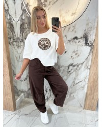 Oversize'owa koszulka z nadrukiem na froncie, wykonana z miękkiej, oddychającej bawełny. Idealna na co dzień i do casualowych stylizacji.