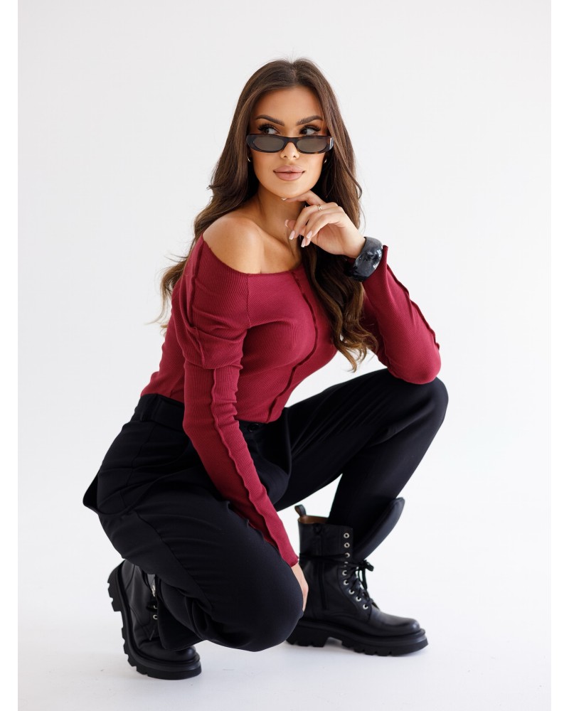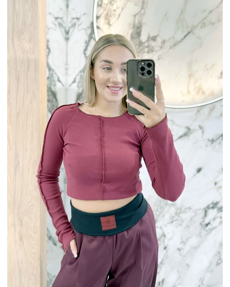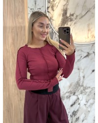 Dopasowana bluzka z prążkowanego materiału z długim rękawem i surowym wykończeniem. Idealna do codziennych i casualowych stylizacji.