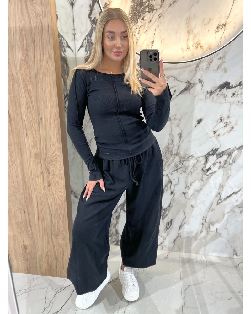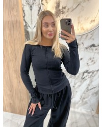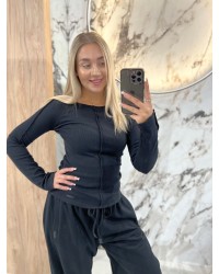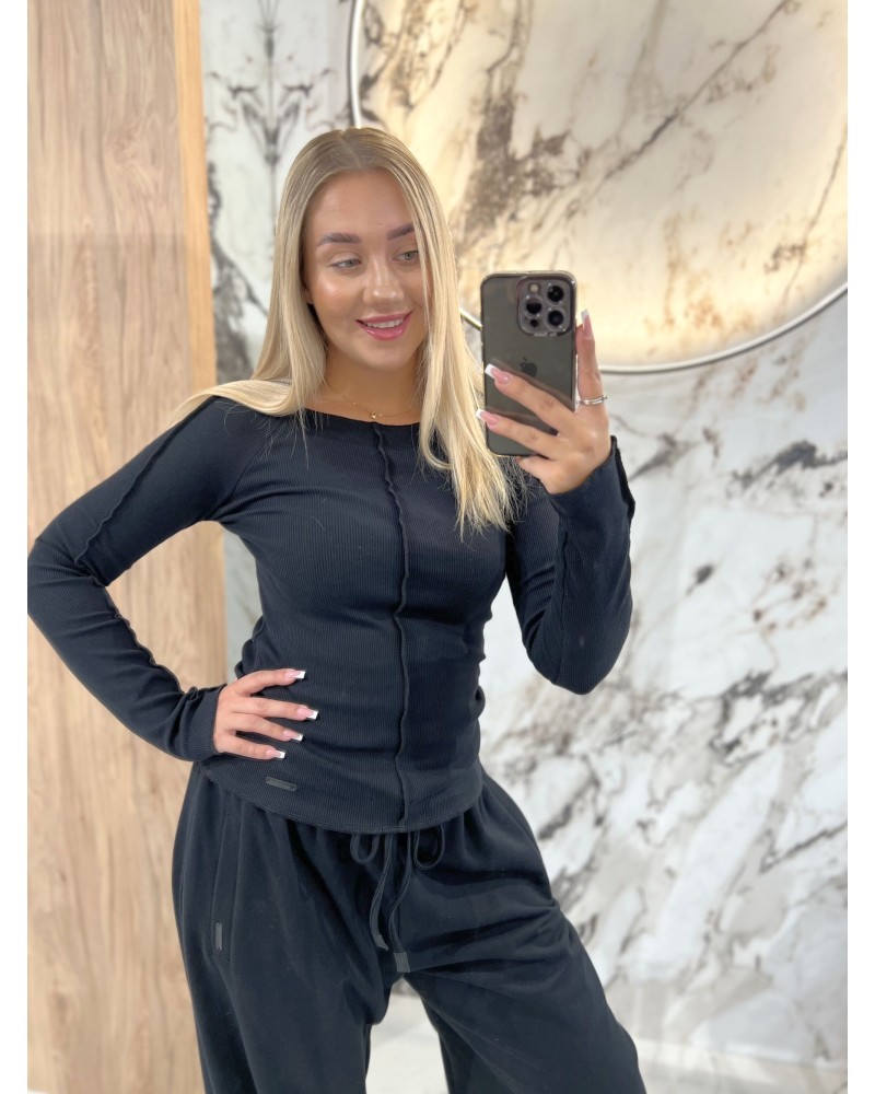 Dopasowana bluzka z prążkowanego materiału z długim rękawem i surowym wykończeniem. Idealna do codziennych i casualowych stylizacji.