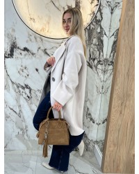 Ten damski płaszcz dresowy to połączenie miejskiego luzu i kobiecej elegancji. Luźny fason z szerokimi rękawami ¾ i klasycznym kołnierzem prezentuje się niezwykle stylowo, a miękka, przyjemna w dotyku dzianina gwarantuje pełen komfort noszenia.