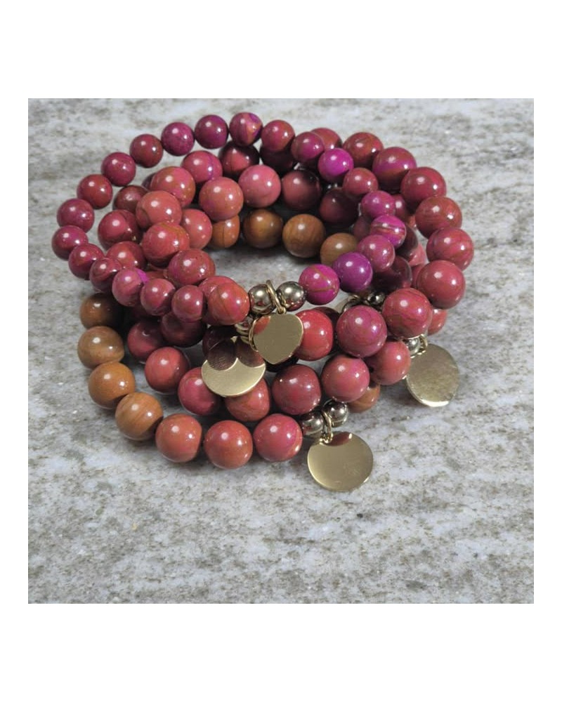 Bransoletka marmurek bordowy By o la la...! ze srebrną zawieszką