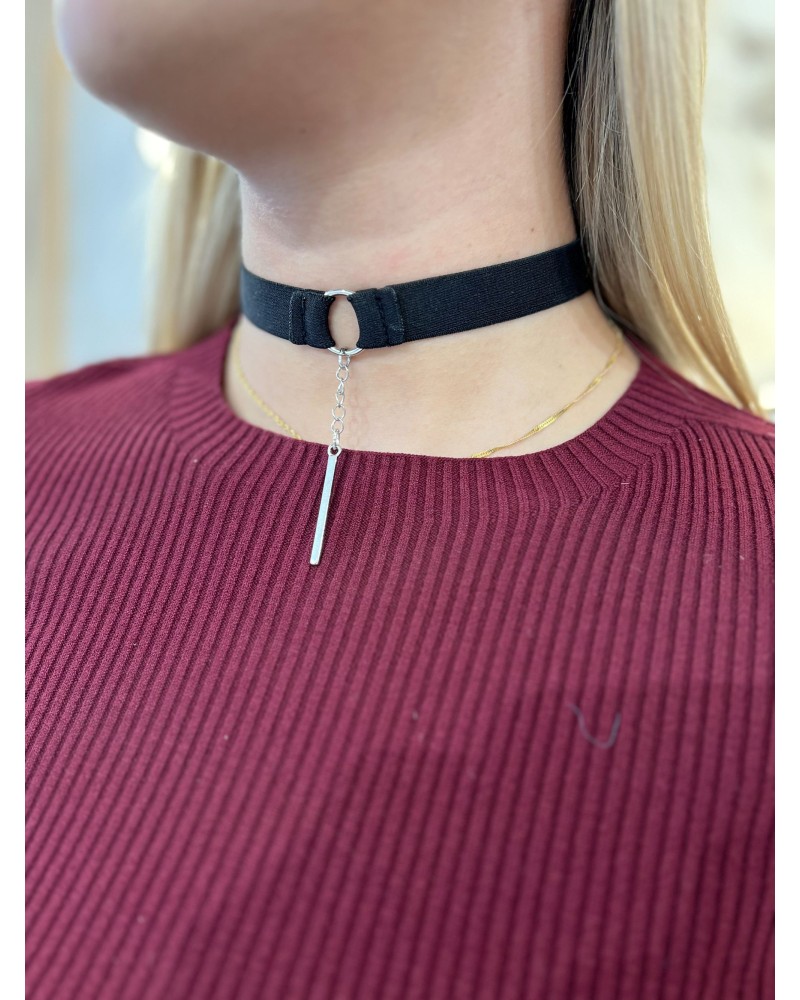 Gumowy choker ze srebrną zawieszką. Regulowana długość.