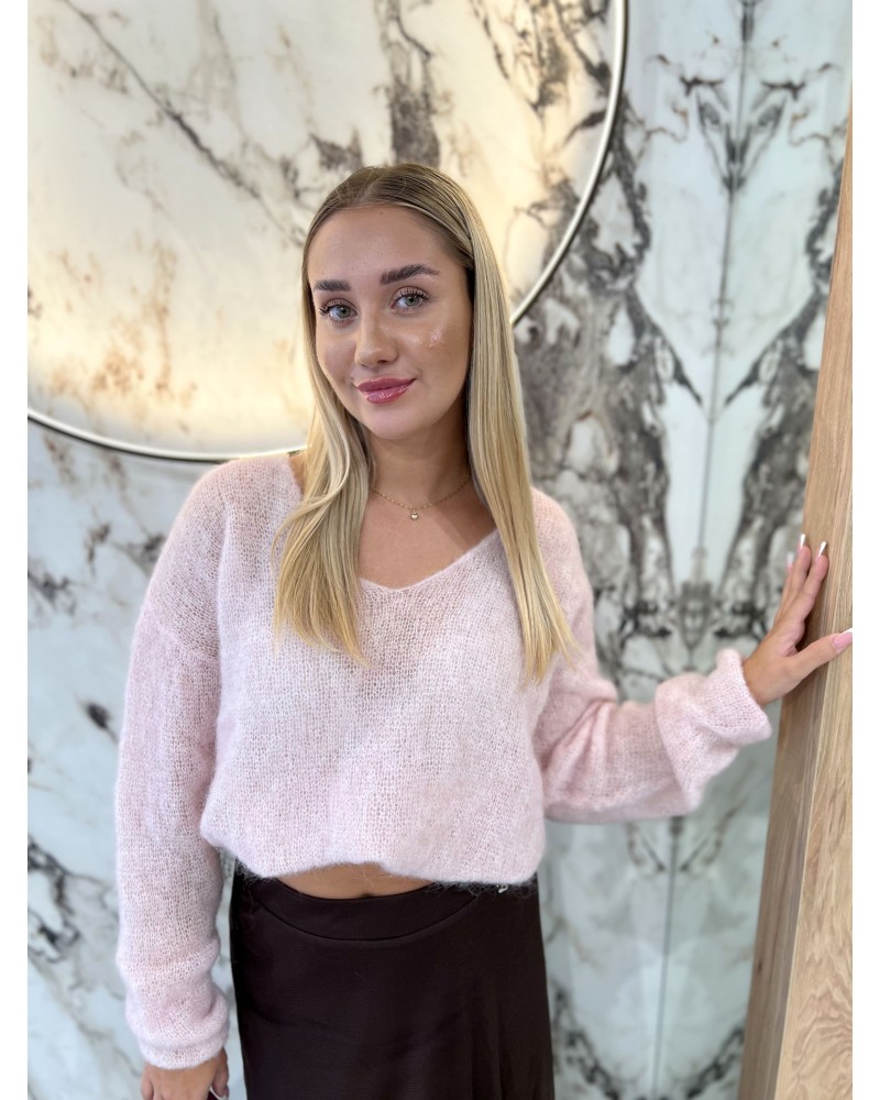 Miękki sweter z dekoltem w serek i długim rękawem. Idealny na chłodniejsze dni, zapewnia komfort i kobiecy wygląd.