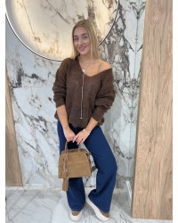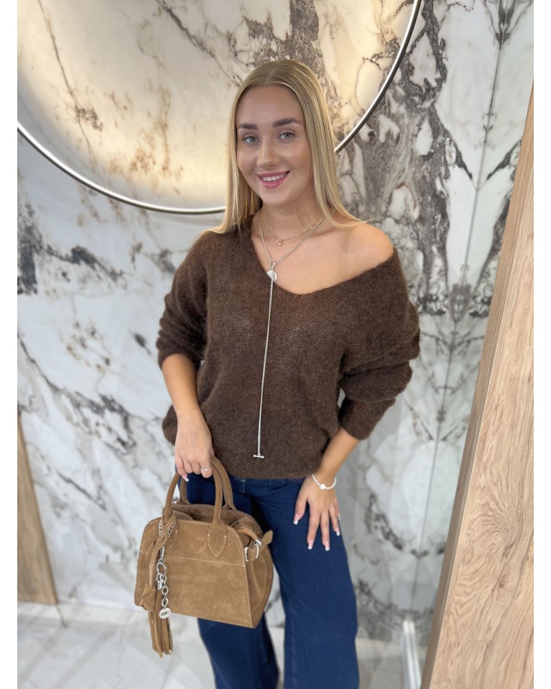 Miękki sweter z dekoltem w serek i długim rękawem. Idealny na chłodniejsze dni, zapewnia komfort i kobiecy wygląd.