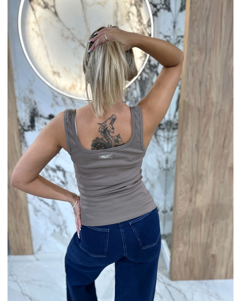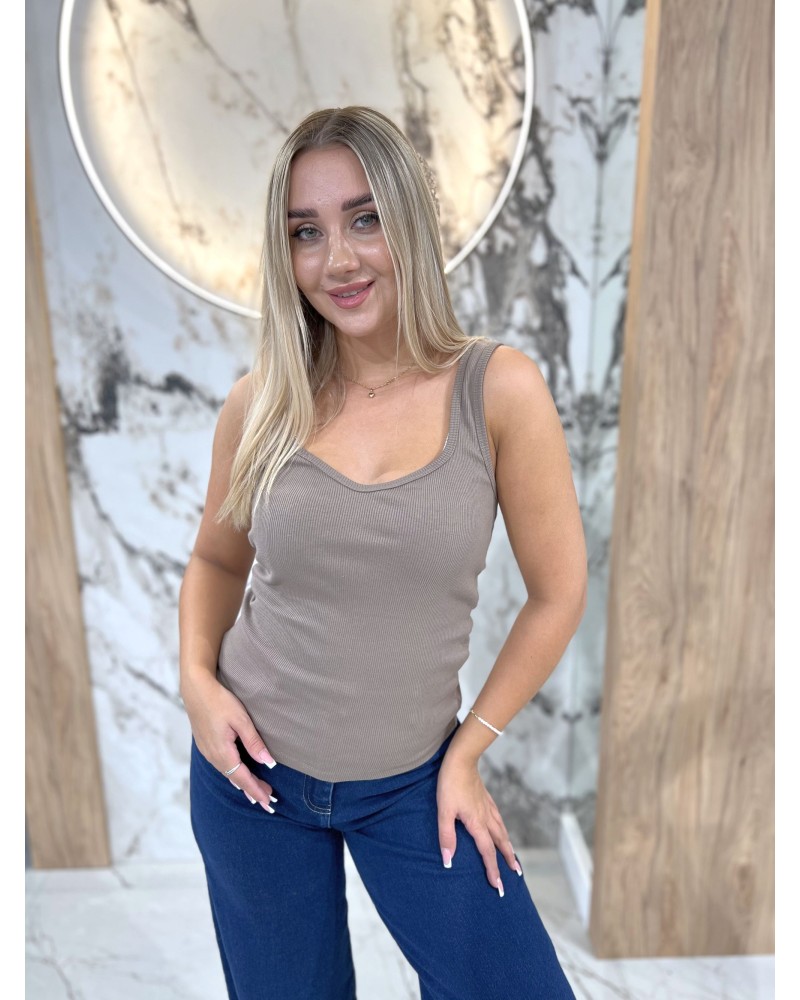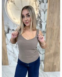 Dopasowana bokserka z dekoltem w serek, wykonana z elastycznej dzianiny prążkowanej. Wygodna i kobieca – świetna do stylizacji codziennych i warstwowych.