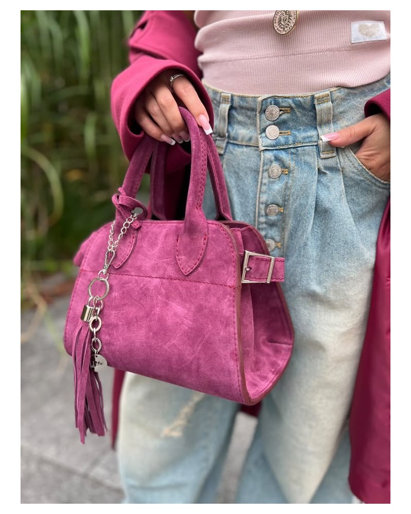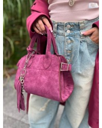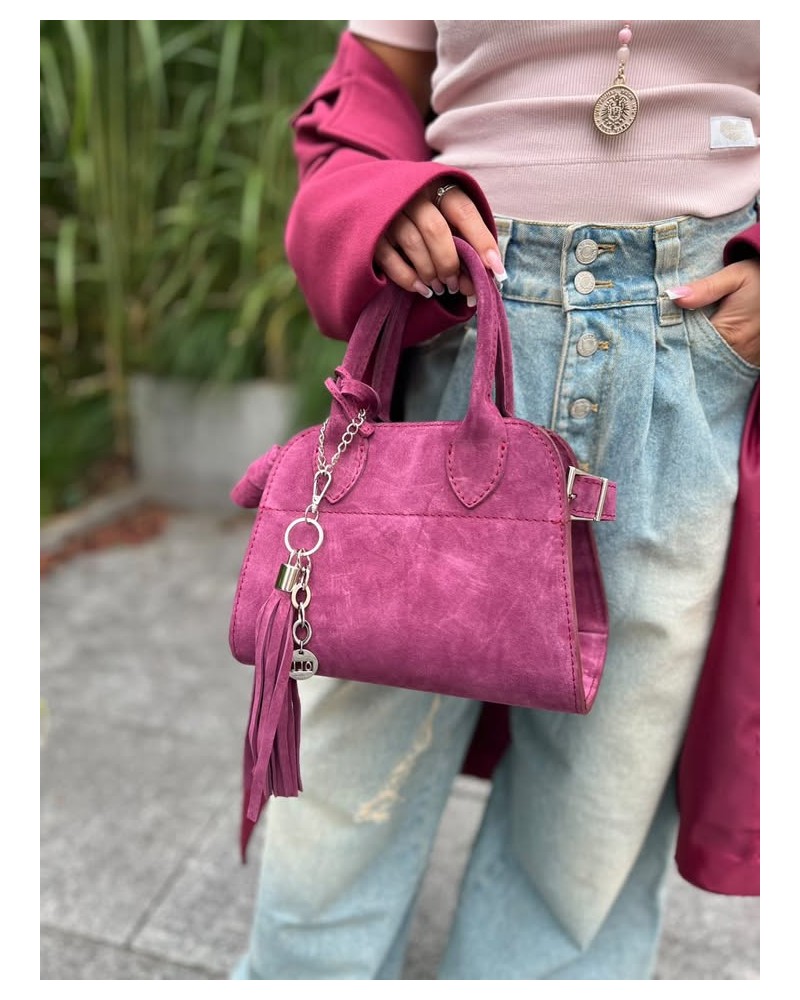 Stylowa torebka o klasycznym fasonie to ponadczasowy dodatek, który doskonale uzupełni zarówno casualowe, jak i eleganckie stylizacje. Model posiada dwa solidne uchwyty do noszenia w dłoni oraz odpinany ozdobny chwost na metalowym łańcuszku, który nadaje całości modnego akcentu. Wykonana z przyjemnego w dotyku materiału imitującego zamsz, torebka zachwyca estetycznym wykończeniem i uniwersalnym charakterem. Kompaktowy rozmiar pomieści najpotrzebniejsze drobiazgi, czyniąc ją praktyczną i funkcjonalną na co dzień. Świetny wybór dla kobiet ceniących klasykę z nutą nowoczesności.