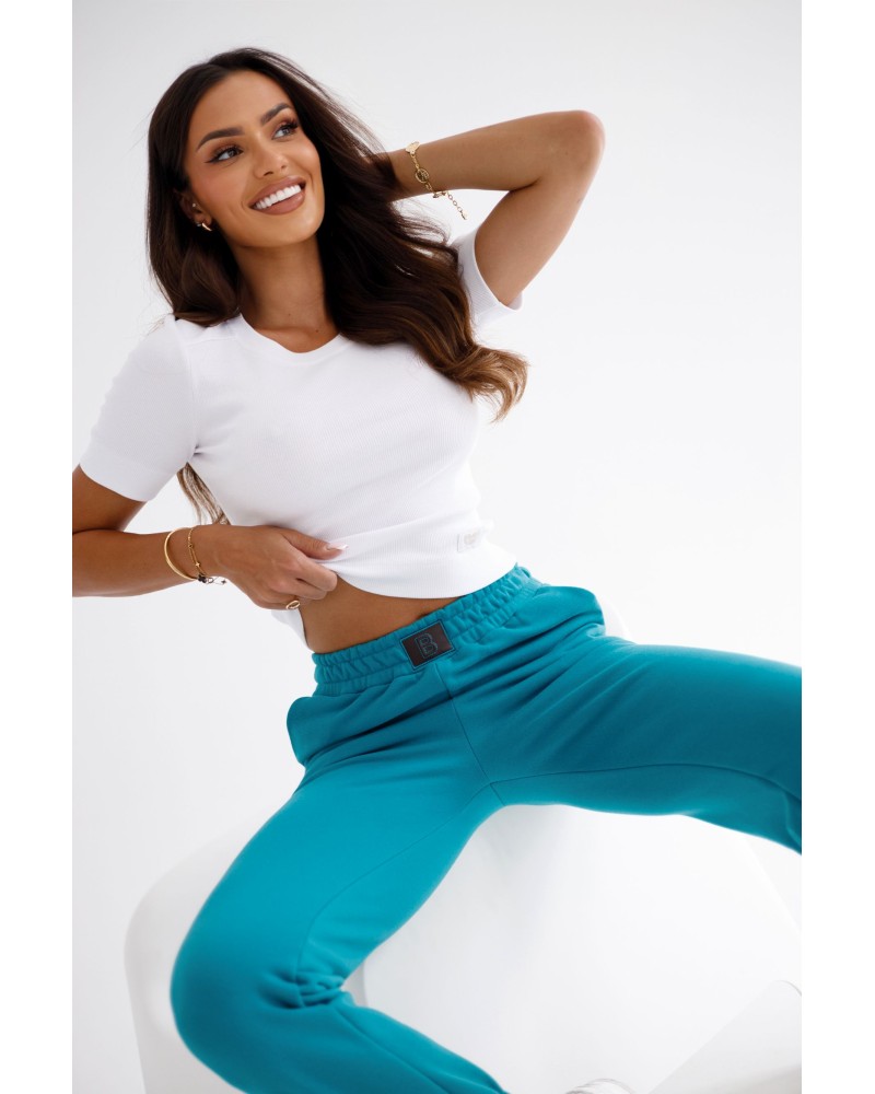 Ten krótki top to połączenie wygody i stylu w nowoczesnym wydaniu. Wykonany z elastycznego, prążkowanego materiału, który doskonale dopasowuje się do sylwetki i podkreśla jej kształty. Model wyróżnia się naszywką w kształcie serduszka, która nadaje mu dziewczęcego charakteru i wyjątkowego uroku. Krój typu crop sprawia, że top świetnie komponuje się zarówno z dresami, jak i jeansami czy spódnicami z wysokim stanem. Idealny wybór na lato, aktywności na świeżym powietrzu lub codzienne wyjścia w swobodnym stylu.