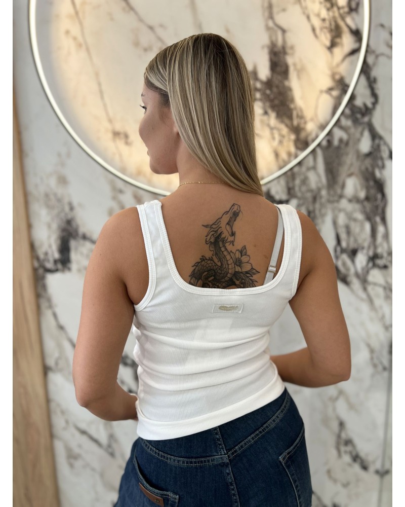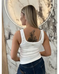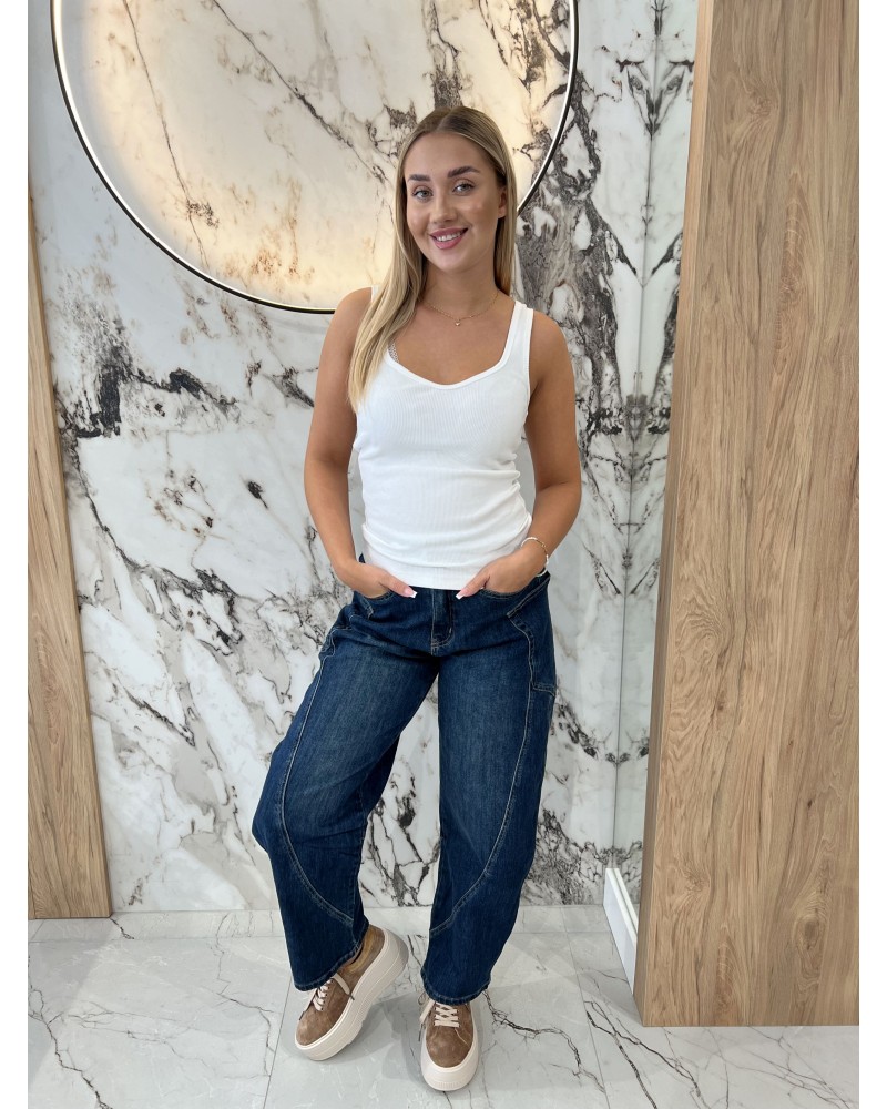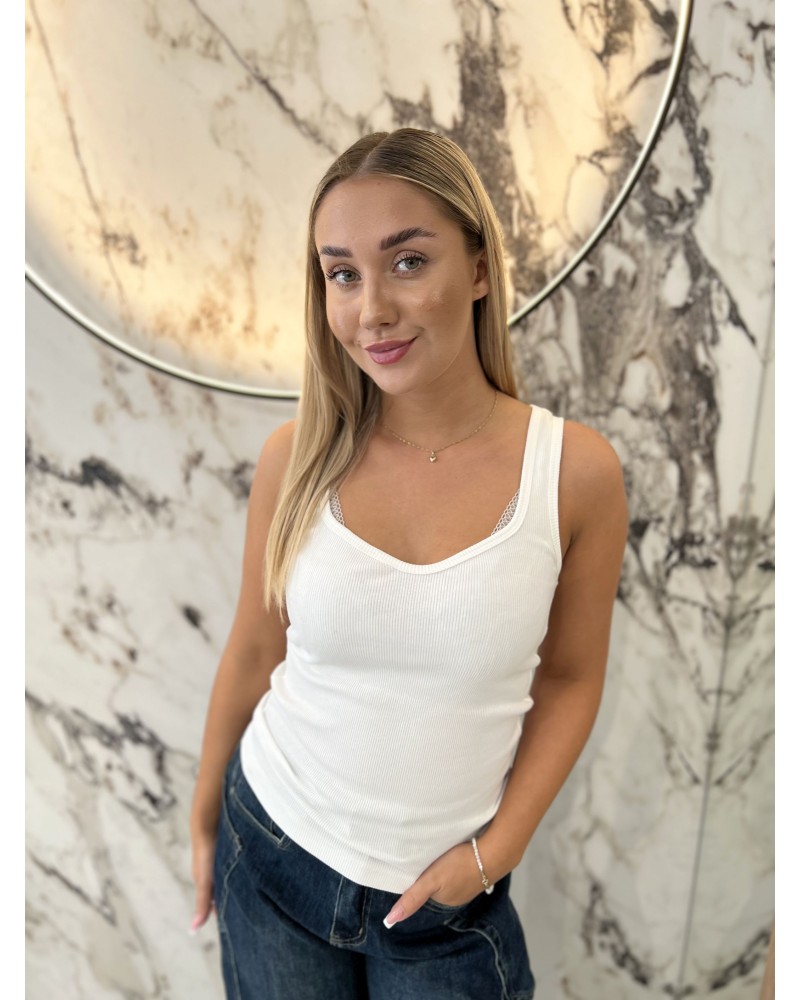Dopasowana bokserka z dekoltem w serek, wykonana z elastycznej dzianiny prążkowanej. Wygodna i kobieca – świetna do stylizacji codziennych i warstwowych.