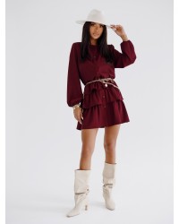 Stylowa sukienka o swobodnym, a zarazem kobiecym kroju to idealny wybór dla kobiet ceniących wygodę i elegancję. Model posiada delikatnie rozkloszowany dół wykończony podwójnymi falbanami, które nadają sylwetce lekkości i subtelnego charakteru. Długi rękaw zakończony elastycznym mankietem sprawdzi się przez cały rok – zarówno w chłodniejsze dni, jak i w cieplejsze wieczory.