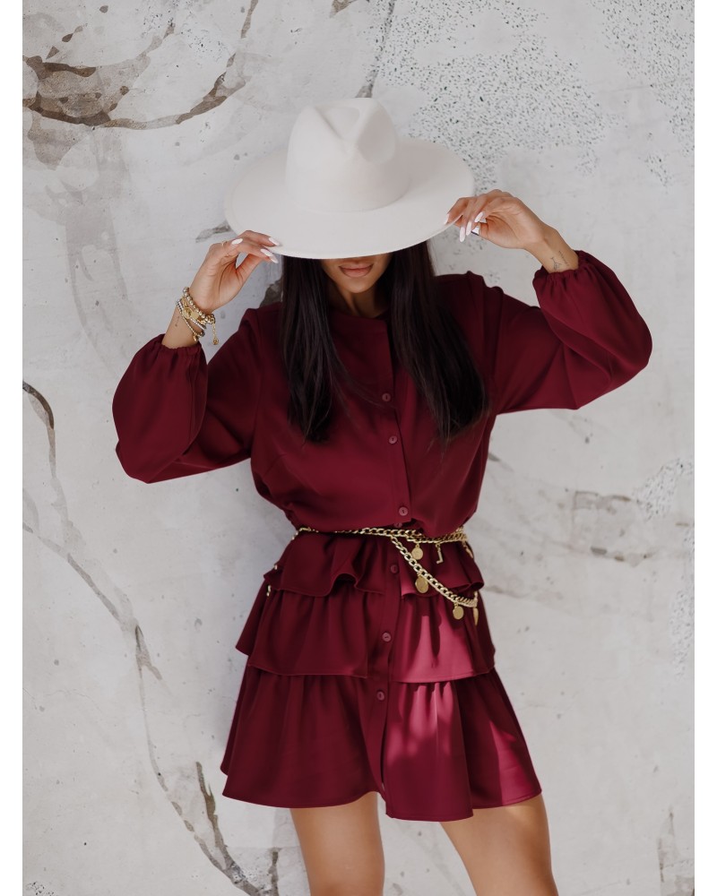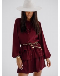 Elegancka sukienka o kobiecym kroju z efektownymi falbanami, idealna na co dzień i specjalne okazje. Wygodna, lekka i stylowa propozycja do Twojej garderoby.