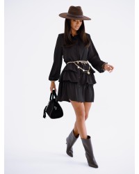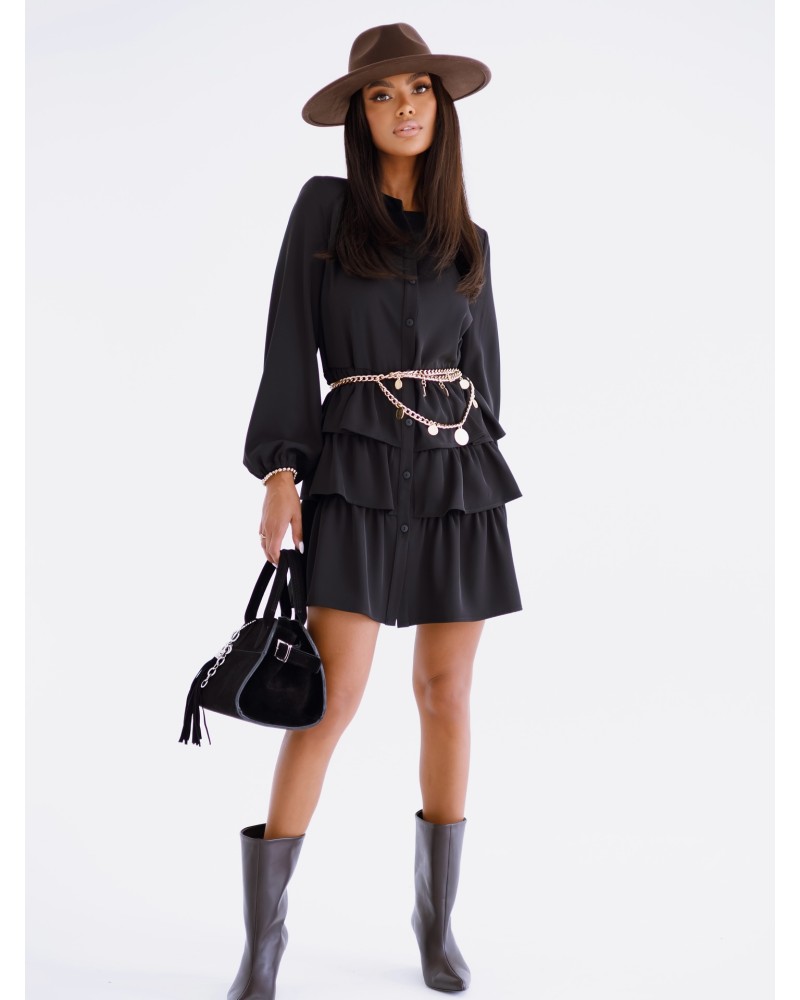 Elegancka sukienka o kobiecym kroju z efektownymi falbanami, idealna na co dzień i specjalne okazje. Wygodna, lekka i stylowa propozycja do Twojej garderoby.