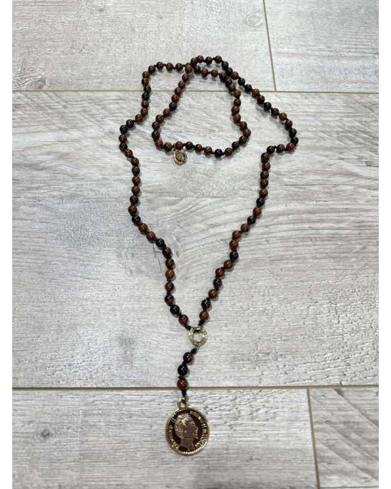 Naszyjnik z kamienia naturalnego - OBSYDIAN MAHONIOWY