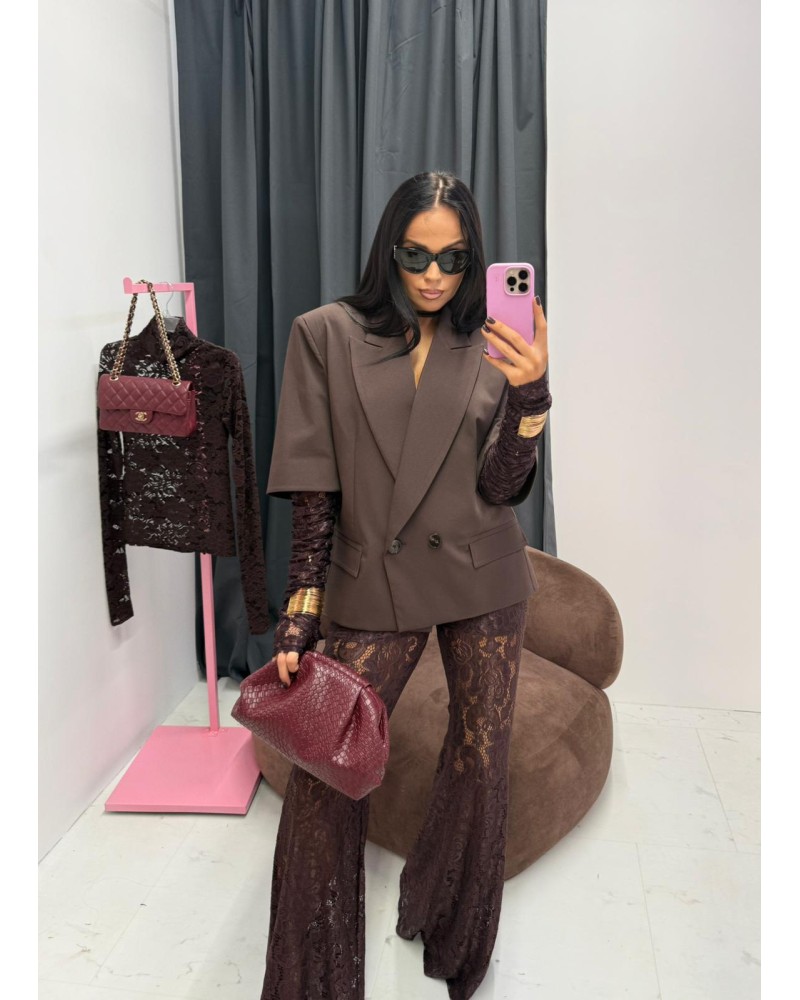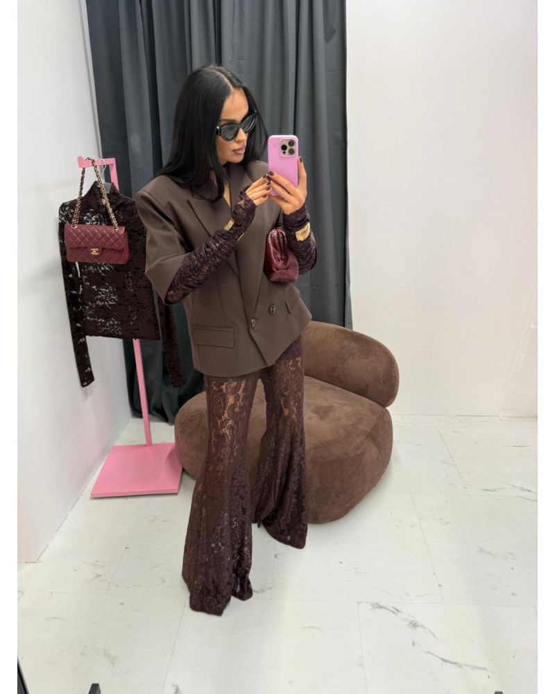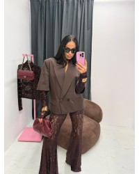 Te różowe spodnie to kwintesencja stylu boho-glam. Delikatny koronkowy wzór w połączeniu z rozkloszowanymi nogawkami optycznie wydłuża nogi i dodaje sylwetce smukłości. Wysoki stan pięknie podkreśla talię, a elastyczny materiał zapewnia komfort przez cały dzień.