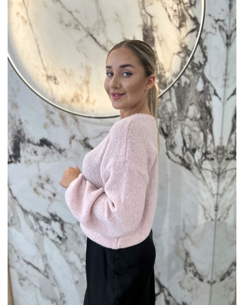 Sweter w szpic z bufiastym rękawem By o la la...! pudrowy róż