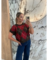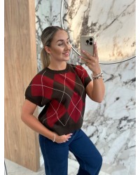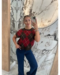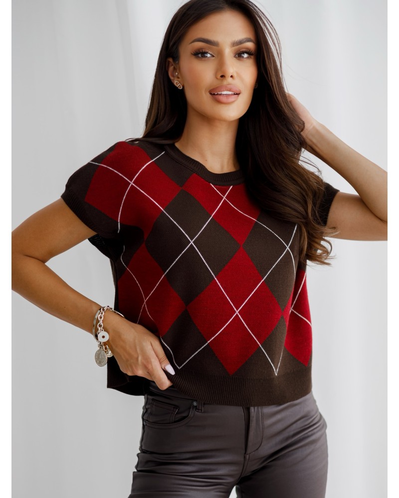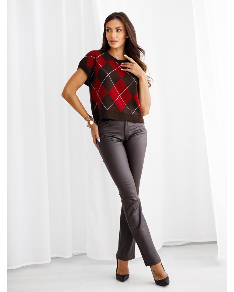 Kamizelka dzianinowa w romby By o la la...! chocomus z merlotem