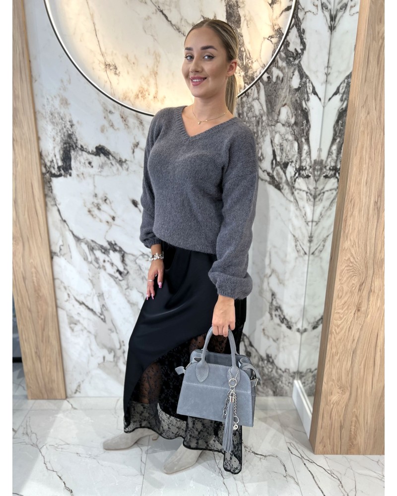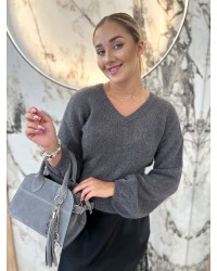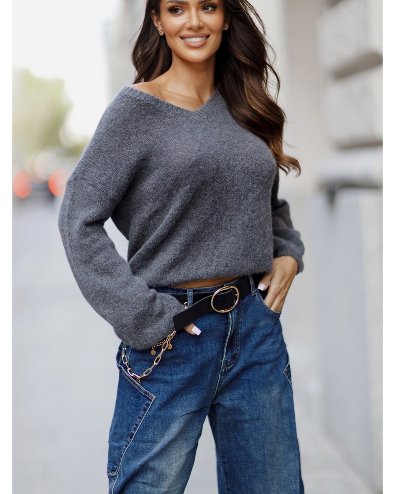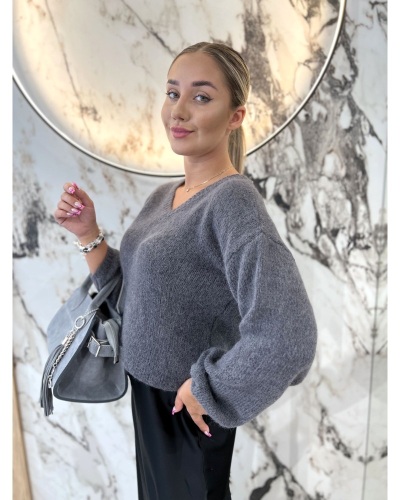 Sweter w szpic z bufiastym rękawem By o la la...! grafitowy