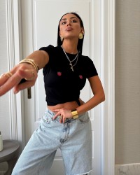 Stylowy t-shirt o klasycznym kroju, wykonany z wysokiej jakości, miękkiej bawełny, która zapewnia komfort noszenia przez cały dzień. Model wyróżnia się dopasowanym fasonem, okrągłym dekoltem oraz subtelnym nadrukiem z przodu, dodającym mu oryginalnego charakteru. Dzięki swojej prostocie i minimalistycznym detalom koszulka doskonale komponuje się z jeansami, szortami czy spódnicą, tworząc zarówno luźne, jak i bardziej dopracowane stylizacje. To uniwersalny element garderoby, który sprawdzi się na co dzień, do pracy, jak i podczas spotkań w mniej formalnym stylu.
