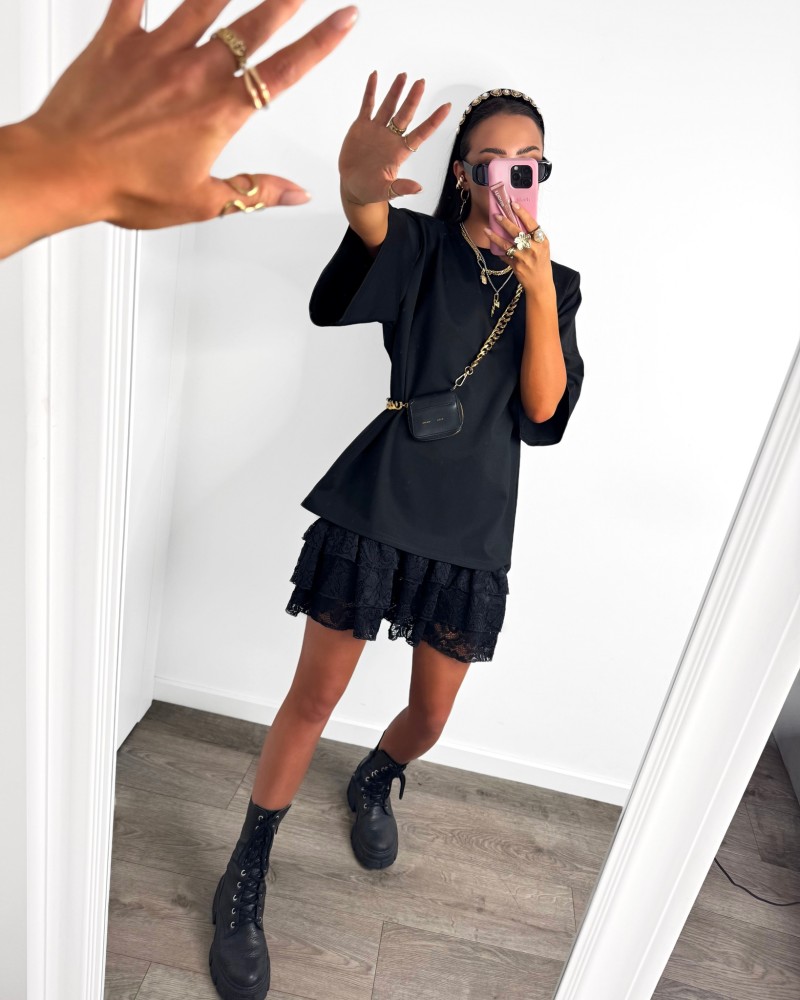 T-shirt o luźnym, oversize’owym kroju to uniwersalny element garderoby, który można nosić na wiele sposobów. Wykonany z miękkiego i przyjemnego w dotyku materiału, zapewnia komfort noszenia przez cały dzień. Szerokie rękawy oraz prosty fason nadają mu nowoczesnego charakteru i sprawiają, że świetnie komponuje się zarówno z legginsami, spódnicami, jak i szortami. Minimalistyczny design pozwala na tworzenie różnorodnych stylizacji – od casualowych, przez sportowe, aż po bardziej odważne zestawy w stylu streetwear. To ponadczasowa baza, która nigdy nie wychodzi z mody.