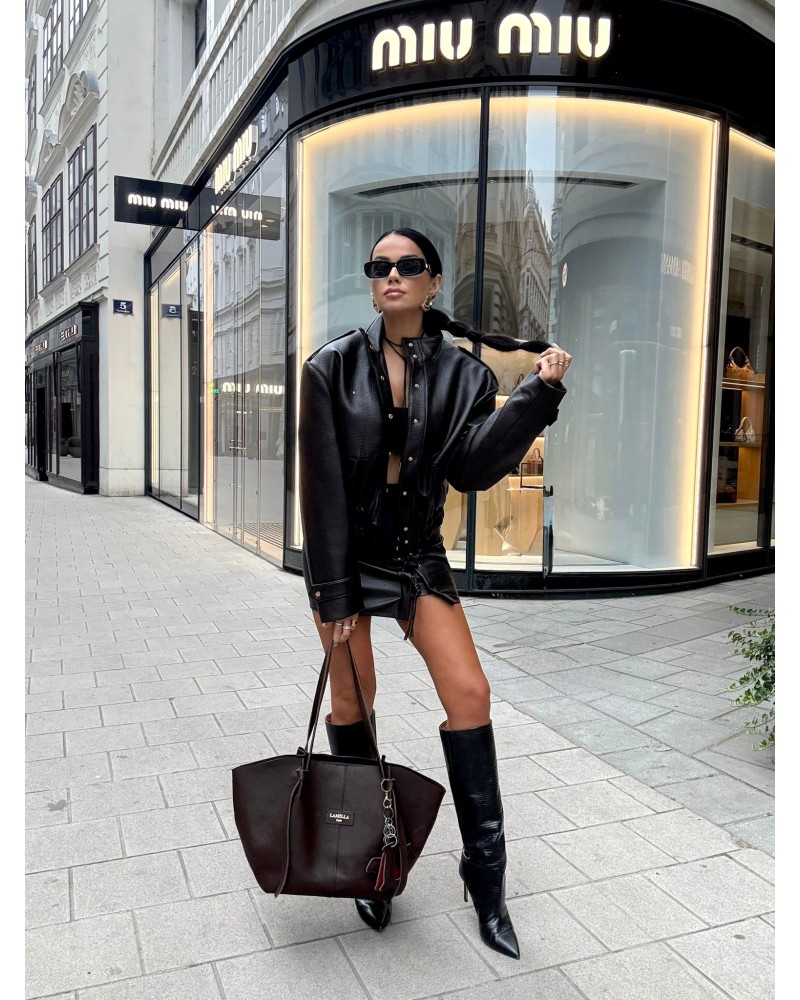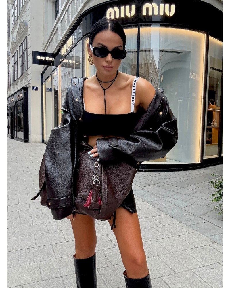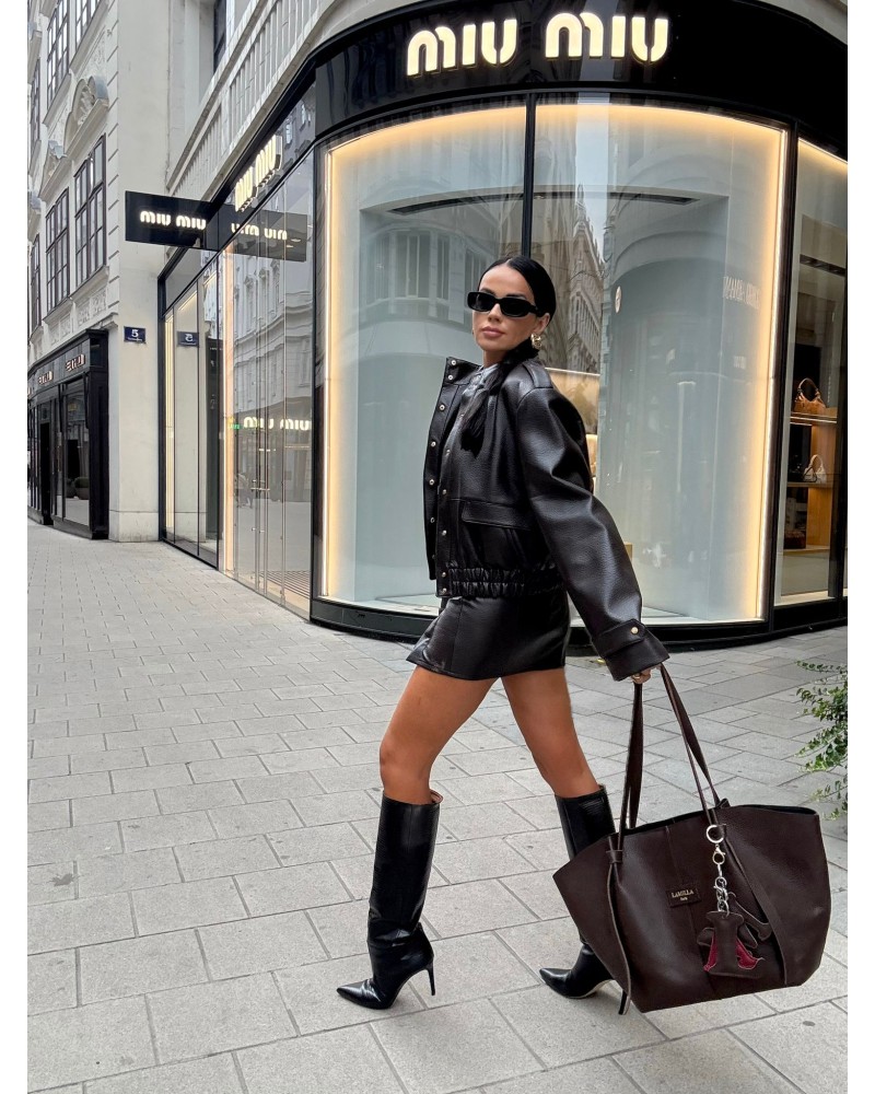 Skórzana bomberka o nowoczesnym kroju, idealna do codziennych i wieczorowych stylizacji. Must-have w szafie każdej miłośniczki mody.